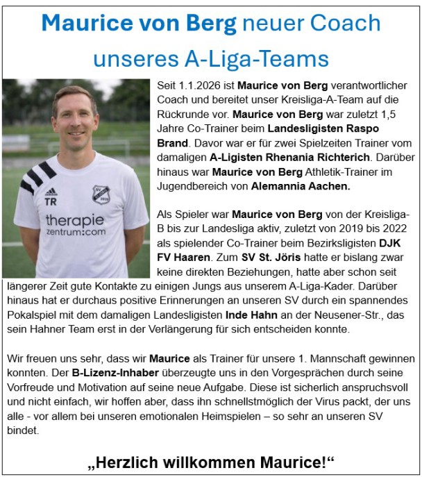 Am 10. Januar 2025 wurde in Aachen dem Serviceteam des SV St. Jöris eine besondere Ehre zuteil. Der Fußballkreis Aachen verlieh dem "SV-Serviceteam" den Ehrenamtspreis 2024 des Fußballverbandes Mittelrhein. Gründerin war 1990 die 2022 verstorbene Anneliese Bittins, die viele Jahre durch die verstorbene Thea Bittins, Martina Seferings und Angelika Kaiser unterstützt wurden. Die Frauen unseres Serviceteams führen die Aufgaben im Sinne von Anneliese Bittins weiter. Wir bedanken uns bei: